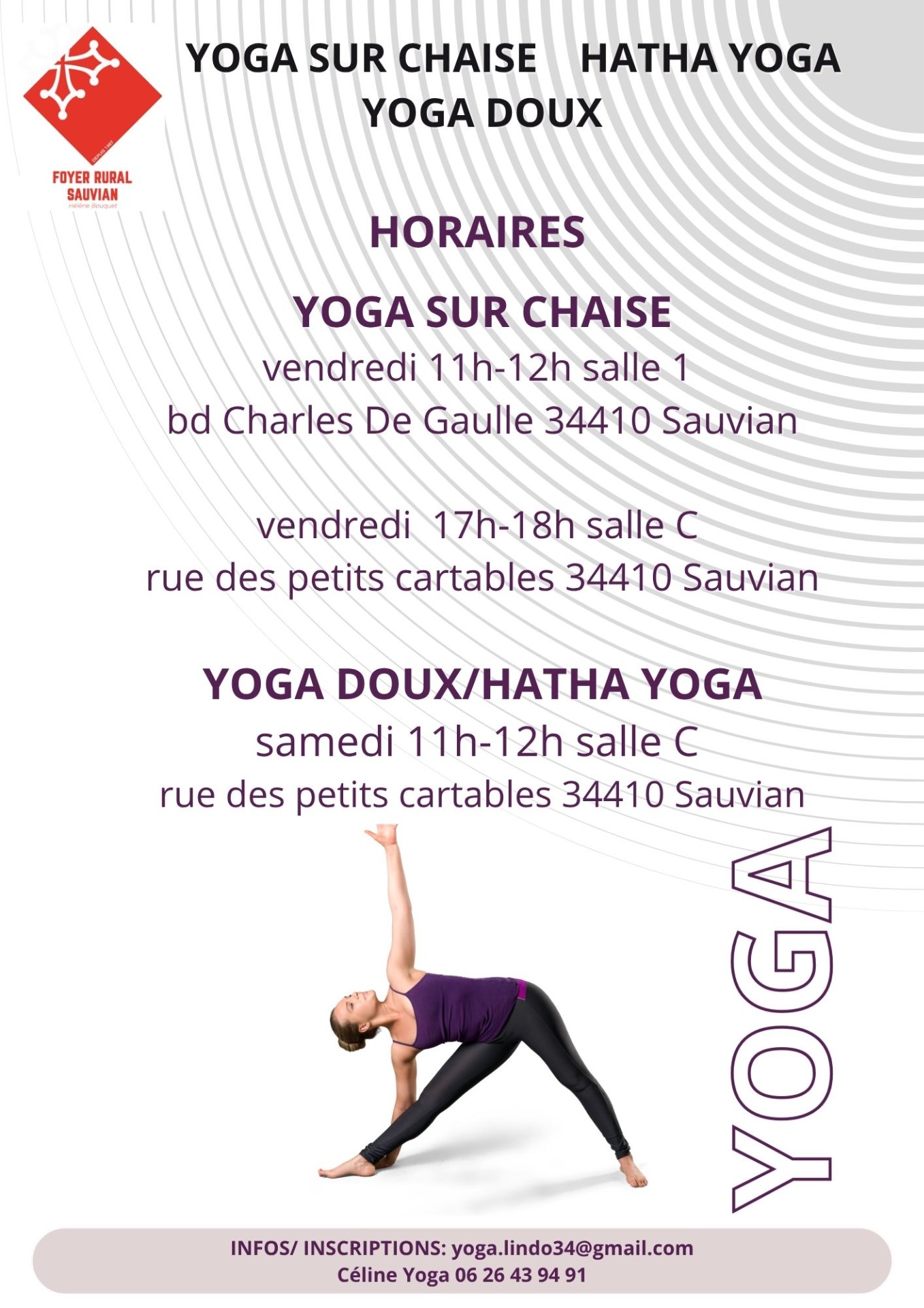 Je suis Céline, Professeure de Yoga Certifiée, je propose des cours deHatha-Yoga, en groupe ou en cours individuels, adaptés à vos besoins, sur la commune de Sauvian et les alentours.